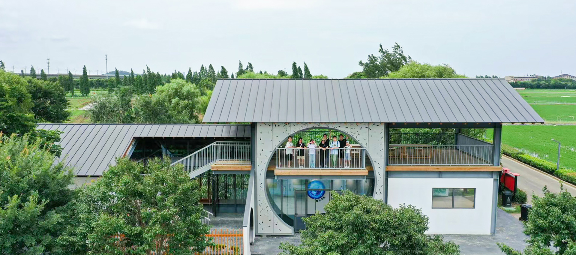The project involves designing a moon gate, which is a common element in Chinese gardens, for a small exhibition hall that showcases local agriculture. I am responsible for its panel design. The town mayor has requested that the panels of the moon gate depict representational patterns of swimming fish to reflect the local agricultural characteristics. To achieve this, a multi-agent system is used to represent the shoal of fish, with individuals in the system changing their positions, speeds, shapes and directions according to rules including distance, cohesion and alignment. The key step is to capture a moment when over 200 fish swim vividly around the doorway, which is then recorded as JSON files and transferred to DXF files for laser engraving machines. The panels are processed in a metalwork factory and assembled on the construction site. The project shows the imitative ability of a MAS and the power of the workflow of automatically generating patterns and DXF files for laser engraving machines, which allows for facade variation without extensive manual drawing in AutoCAD.